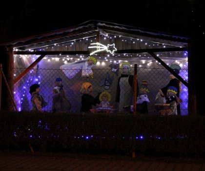 Letos jsme se bohužel nemohli tradičně sejít na hřišti s cukrovím, svařákem a koledami, ale i přes to jsme se snažili udělat si to hezké. Od pěti rozhlasem zněly vánoční koledy a každý kdo mohl, rozsvítil v okně nějaké světýlko či svíčku. Jako každoročně se rozsvítil vánoční betlém a vzhledem k situaci velmi tématický. Přejeme Vám všem krásnou 1. adventní neděli![]()